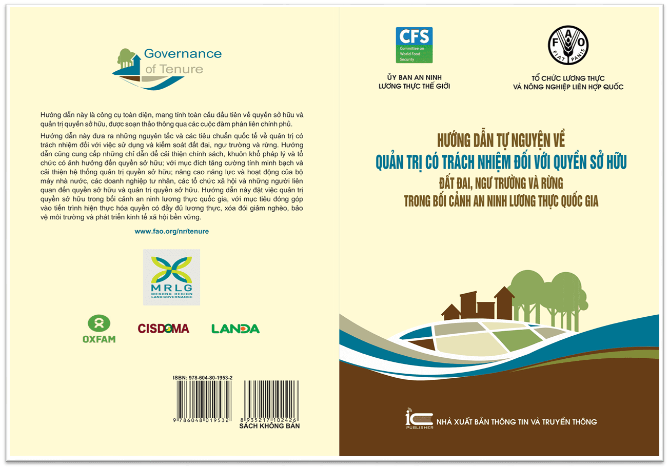The “Voluntary Guidelines on the Responsible Governance of Tenure of Land, Fisheries and Forests in the Context of National Food Security” (VGGT) have been recently published in Vietnamese by: The Food and Agriculture Organization of the United Nations (FAO), Oxfam in Vietnam, The Consultative Institute for Socio-Economic Development of Rural and Mountainous Areas (CISDOMA), and the Land Alliance (LANDA), with support from the Mekong Region Land Governance (MRLG) Program. These Guidelines are the first comprehensive, global instrument on tenure and the governance of tenure of land, drafted through intergovernmental negotiations.
