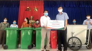Bàn giao trang thiết bị phân loại và thu gom rác thải hỗ trợ cho các tổ nhóm, trường học và các hộ tại xã Điện Tiến,Thị xã Điện Bàn, Quảng Nam (11/6/2021)