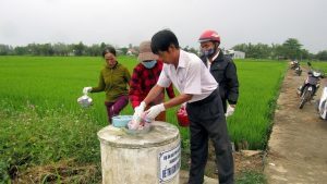Bàn giao bể thu gom vỏ đựng thuốc BVTV cho các HTX tại 05 thôn thuộc xã Điện Tiến để thực hiện quy trình tiêu hủy an toàn chất độc hại tại thị xã Điện Bàn, Quảng Nam ( 22/3/2021).